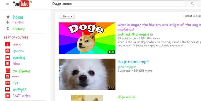 क्या आपने यूट्यूब को कभी रंग बिरंगा देखा है। अगर नहीं, तो ये शब्द आपकी मदद करेगा। इसे यूट्यूब में सर्च करने पर यूट्यूब रंग बिरंगा हो जाता है। इसका स्क्रीनशॉट नीचे दिया गया है।