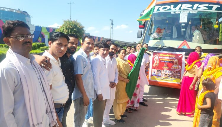 बंजारा समाज काफिले को दिल्ली के लिए झड़ी दिखा रवाना करते हुए जिला अध्यक्ष