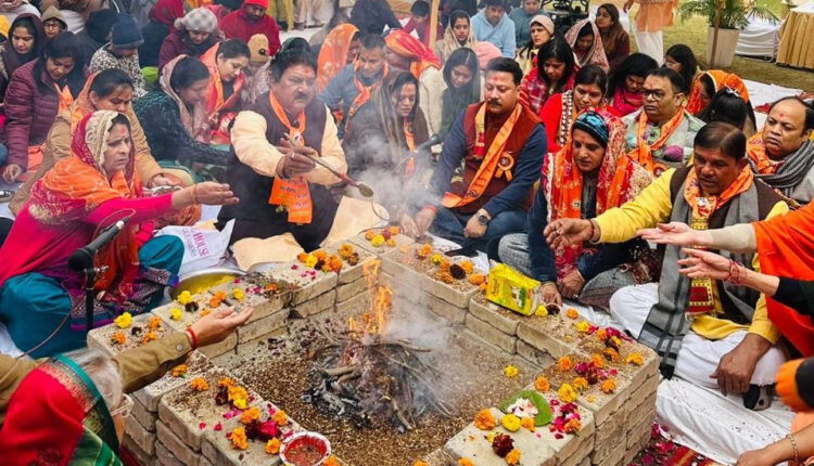 बादशाहपुर, 22 जनवरी (अजय) : अयोध्या में भगवान श्रीराम मंदिर में रामलला विग्रह की प्राण प्रतिष्ठा समारोह के उपलक्ष्य में सोमवार को बादशाहपुर स्थित बेस्टेक पार्क व्यू स्पा नेक्स्ट सैक्टर 67 सोसाइटी में हवन-यज्ञ का आयोजन किया गया, जिसमें मुख्य यजमान के रुप में भाजपा किसान मोर्चा हरियाणा के प्रदेश उपाध्यक्ष बेगराज यादव शामिल हुए। उन्होंने हवन में विश्व शांति की कामना करते हुए आहूति डाली। कार्यक्रम में क्षेत्र के गणमान्य लोगों सहित बड़ी संख्या में महिला-पुरुष भी शामिल हुए। अयोध्या में हुए कार्यक्रम को लाइव दिखाने के लिए बड़ी स्क्रीन लगाई गई, जिस पर लोगों ने प्राण प्रतिष्ठा समारोह को देखकर स्वयं को लाभान्वित महसूस किया। भण्डारे का आयोजन भी किया गया। बेगराज यादव ने लोगों को शुभकामनाएं देते हुए कहा कि 500 वर्षों तक चली लड़ाई, असंख्य कार सेवकों के बलिदान और रामभक्तों के धैर्य का ही परिणाम है कि आज हमें भगवान श्रीराम के मंदिर को देखने का सौभाग्य प्राप्त हुआ है। हम सौभाग्यशाली हैं कि हमें यह अलौकिक दृश्य अपनी आंखों से देखने का अवसर मिला है। इससे बड़ा कोई खुशी का क्षण नहीं हो सकता।