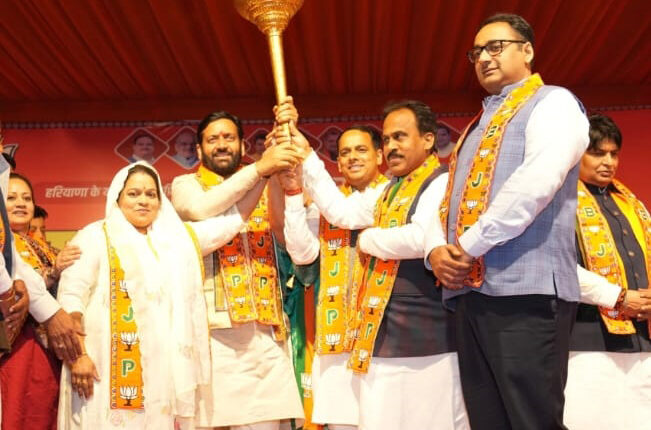 बादशाहपुर, 24 फरवरी (अजय) : मानेसर नगर-निगम चुनाव में भारतीय जनता पार्टी की जीत अब और भी प्रबल हो गई हैं। मुख्यमंत्री नायब सैनी की मौजूदगी में भाजपा मेयर प्रत्याशी सुन्दरलाल यादव को वरिष्ठ भाजपा नेत्री चंद्रकला यादव ने पूर्ण समर्थन देते हुए जनता से उनके पक्ष में मतदान करने की अपील की। चंद्रकला यादव ने कहा कि मानेसर की जनता भाजपा की विकास नीतियों और सुशासन को लेकर उत्साहित है। उन्होंने विश्वास जताया कि इस चुनाव में भाजपा की प्रचंड जीत होगी और सुन्दरलाल यादव मानेसर के मेयर बनकर नगर निगम को एक नई दिशा देंगे। चुनाव प्रचार के दौरान चंद्रकला यादव लगातार क्षेत्र में जनसंपर्क कर रही हैं और मतदाताओं से भाजपा को वोट देने का आग्रह कर रही हैं। उन्होंने कहा भाजपा की नीतियों से मानेसर में विकास की गति तेज होगी, जनता को पारदर्शी और जवाबदेह प्रशासन मिलेगा। मुख्यमंत्री नायब सैनी ने भी भाजपा उम्मीदवार को समर्थन देने के लिए जनता से अपील की और कहा कि भाजपा मानेसर को स्मार्ट सिटी बनाने के लिए प्रतिबद्ध है। चुनावी माहौल में भाजपा की मजबूती साफ दिख रही है और मानेसर में कमल खिलने के संकेत मिल रहे हैं।