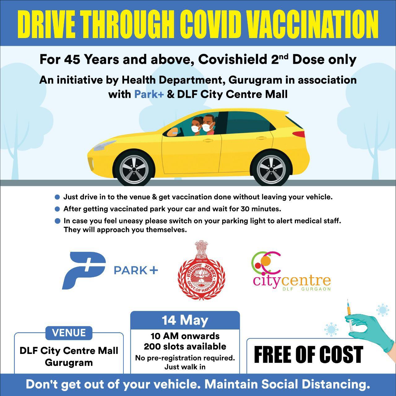 गुरुग्राम, 13 मई : गुरुग्राम में 45 वर्ष से अधिक आयु वर्ग के दूसरी डोज लगवाने वालो के लिए केवल एक जगह, डीएलएफ सिटी सेंटर मॉल पर 14 मई को रहेगी यह व्यवस्था। जिला में स्वास्थ्य विभाग एक नई पहल करने जा रहा है जिसमें आप अपनी गाड़ी से नीचे उतरे बगैर, गाड़ी में बैठे बैठे ही कोरोना रोधी वैक्सीन की डोज लगवा सकते हैं। फिलहाल यह नया प्रयोग 14 मई शुक्रवार को एक दिन के लिए गुरुग्राम में केवल एक स्थान – डीएलएफ सिटी सेंटर मॉल पर किया जा रहा है। इस स्थान पर 14 मई शुक्रवार को 45 साल से ऊपर के कोविशील्ड वैक्सीन की दूसरी डोज लगवाने वालों को यह सुविधा दी जा रही है कि वे अपनी गाड़ी में बैठे बैठे ही ड्राइव थ्रू करके वैक्सीन लगवा सकते हैं। इस स्थान पर कोविशील्ड वैक्सीन की दूसरी डोज निशुल्क दी जाएगी। यहां पर प्रातः 10:00 बजे से 200 डोज का स्लॉट रखा गया है और डोज के लिए रजिस्ट्रेशन की जरूरत नहीं है।