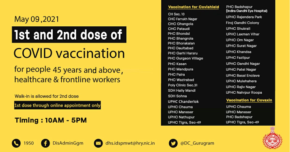 गुरुग्राम में आज इन जगहों पर लगवा सकेंगे पहली औऱ दूसरी कोरोना वैक्सीन डोज Gurgaon Live By PBK News On May 9, 2021 114 Share 114 Share FacebookTwitterGoogle+ReddItWhatsAppPinterestEmail