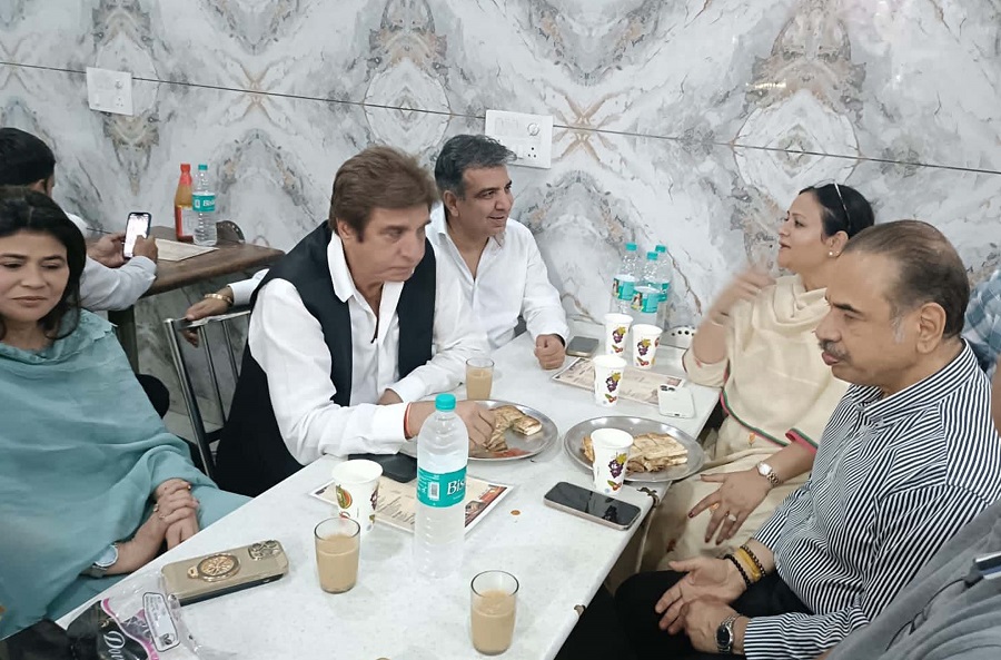 पूर्व सांसद राज बब्बर ने गुडग़ांव के सदर बाजार में की चाय पर चर्चा