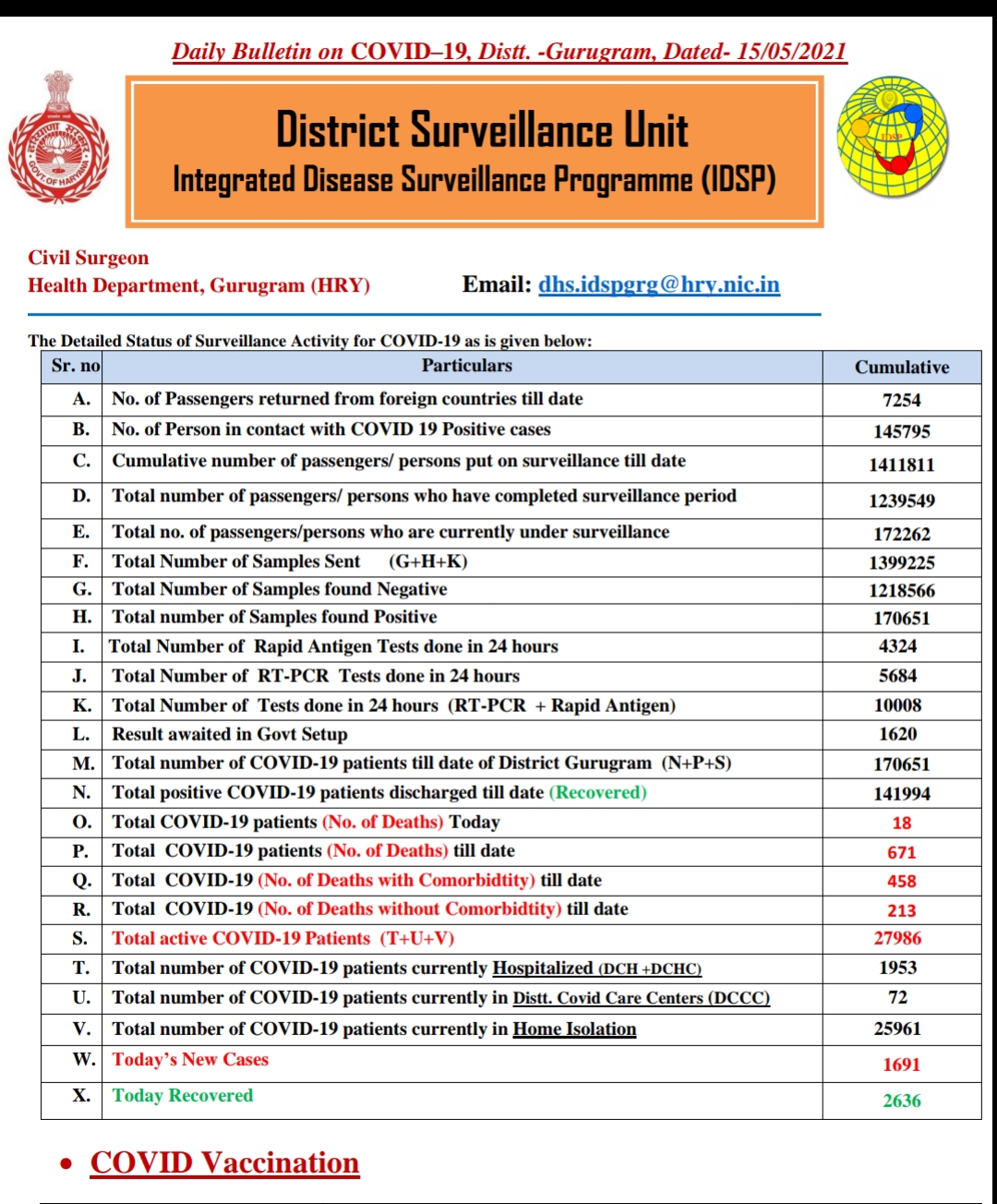 गुरुग्राम में आज 1691 कोरोना के नए मामले, 18 की मौत, देखें पूरे आंकड़ें Breaking NewsFeaturedGurgaon Live By PBK News On May 15, 2021 341 Share 341 Share FacebookTwitterGoogle+ReddItWhatsAppPinterestEmail