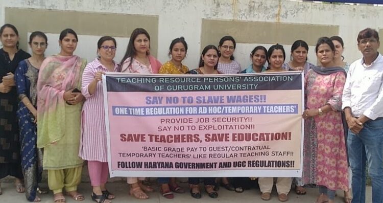 गुरुग्राम विश्वविद्यालय में नया वेतन न मिलने से भड़के कच्चे सहायक कर्मचारी