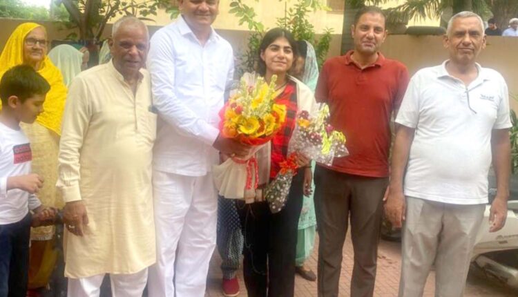 बादशाहपुर, 31 जुलाई (अजय) : गुरुग्राम के गांव वजीराबाद निवासी सुरेंद्र यादव की सुपुत्री अनिषा यादव ने अपनी कड़ी मेहनत और लगन से एन.डी.ए. की परीक्षा में सफलता प्राप्त कर पूरे गुरुग्राम का नाम रोशन कर दिखाया है। उक्त विषय में सतीश यादव कन्हेई ने कहा कि एन.डी.ए. में चयन होकर वजीराबाद की बेटी अनिषा यादव ने पुरे गुरुग्राम का नाम रोशन कर दिखाया है। जिसके लिए उन्होंने स्वयं उनके घर पहुंचकर बेटी अनिषा यादव को आशीर्वाद दिया और उसके उज्ज्वल भविष्य की कामना की। इस मौके पर भारी संख्या में लोग पहुंचकर अनिषा यादव को बधाई दे रहे थे। लोगों के आने जाने का शिलशिला जारी था। सतीश यादव ने कहा कि मेहनत करने वालों की कभी हार नही होती है, देश में आज बेटा बेटी एक समान है। वजीराबाद निवासी सुरेन्द यादव ने बेटी अनिषा यादव को पढने का मौके दिया तो आज उनकी बेटी ने अपने माता पिता के साथ साथ यादव समाज एवं गुरुग्राम शहर का नाम रोशन करके दिखा दिया है। उन्होंने सभी से अपील करते हुए कहा कि हमे बेटियों के साथ कंधे से कंधा मिलकर खड़ा होना चाहिए ताकि बेटियों को आगे बढने का मौके मिल सके।