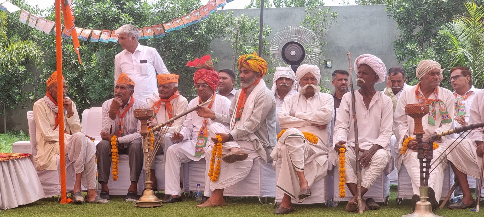 गुरुग्राम, 17 मई (ब्यूरो) : आज कादरपुर गाँव के गजराज फार्म पर भाजपा प्रत्याशी राव इंद्रजीत सिंह का क्षेत्र की सरदारी ने पगड़ी बाँध व् फूलों के गुलदस्ते देकर भव्य स्वागत किया गया। बुजुर्गों ने हाथउठाकर राव इंद्रजीत को समर्थन देने की बातें कही। इस कार्यक्रम में विशेष रूप से कार्यक्रम आयोजक गजराज दायमा और अन्य समर्थकों ने राव इंद्रजीत सिंह को पूर्ण समर्थन का वचन दिया और उनकी जीत का आश्वासन दिलाया। कार्यक्रम में उमड़ी भीड़ को देख राव इंद्रजीत सिंह ने गजराज दायमा का आभार जताया और उनकी पीठथपथपाई। कार्यक्रम की शुरुआत रागनी कम्पीशन के भव्य आयोजन से हुई, जिसने सभी उपस्थित लोगों का भरपूर मनोरंजन किया। रागनी कलाकारों ने अपने शानदार प्रदर्शन से माहौल को और अधिक उत्साहपूर्ण बना दिया। कार्यक्रम के दौरान भोजन की भी उत्तम व्यवस्था की गई थी, जिसमें विभिन्न प्रकार के पकवान परोसे गए। उपस्थित लोगों ने भोजन का आनंद लेते हुए कार्यक्रम का पूर्ण लुत्फ उठाया। राव इंद्रजीत सिंह ने अपने संबोधन में भाजपा की उपलब्धियों को गिनाया और विभिन्न योजनाओं तथा नीतियों के बारे में जानकारी दी, जो पार्टी ने जनता के हित में लागू की हैं। उन्होंने कहा कि भाजपा सरकार ने विकास के नए आयाम स्थापित किए हैं और जनता की सेवा को सर्वोच्च प्राथमिकता दी है।  राव इंद्रजीत सिंह ने उपस्थित लोगों का आभार व्यक्त किया और उनके समर्थन व आशीर्वाद के लिए धन्यवाद दिया। उन्होंने कहा आपका समर्थन हमारी ताकत है और आपके आशीर्वाद से ही हम आगे बढ़ सकते हैं। हम जनता की अपेक्षाओं पर पूरी तरह से खरा उतरने का प्रयास करेंगे और क्षेत्र को विकास की नई ऊंचाइयों पर पहुँचाएंगे। गजराज दायमा ने भी अपने संबोधन में राव इंद्रजीत सिंह की तारीफ की और उन्हें एक योग्य और समर्पित नेता बताया। उन्होंने कहा राव इंद्रजीत सिंह ने हमेशा जनता के हित को प्राथमिकता दी है और हमें पूरी उम्मीद है कि वे आगे भी इसी दिशा में कार्य करते रहेंगे। समाप्त होते-होते कार्यक्रम ने एकता और समर्थन की भावना को और मजबूत किया। भाजपा समर्थकों के बीच उल्लास और उत्साह साफ दिखाई दे रहा था, जिसमें सभी ने आने वाले चुनावों में राव इंद्रजीत सिंह की भारी जीत की कामना की।