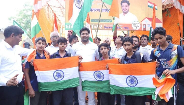 गुरुग्राम, 17 अगस्त (ब्यूरो) : सोहना में स्वतंत्रता दिवस के उपलक्ष्य में भाजपा नेता धर्मेन्द्र तंवर ने आम जनता के बीच 1,111 तिरंगा झंडे वितरित किए। इस आयोजन के दौरान उन्होंने क्षेत्र के युवाओं और बच्चों को तिरंगे का महत्व समझाया और देश की स्वतंत्रता के लिए अपने प्राणों की आहुति देने वाले वीर योद्धाओं को याद किया। धर्मेन्द्र तंवर ने तिरंगे का वितरण करते हुए कहा, हमारा तिरंगा केवल एक झंडा नहीं, बल्कि हमारे देश की आन, बान और शान का प्रतीक है। इसके तीन रंग हमें हमारी संस्कृति, शांति और समृद्धि की याद दिलाते हैं, और बीच का चक्र हमें सतत विकास और प्रगति की ओर बढ़ने की प्रेरणा देता है। उन्होंने युवाओं और बच्चों को तिरंगे के प्रति सम्मान और गर्व की भावना विकसित करने का आह्वान किया। तंवर ने कहा कि आज की पीढ़ी को स्वतंत्रता संग्राम के उन वीर योद्धाओं के बलिदान को नहीं भूलना चाहिए जिन्होंने अपनी जान की बाजी लगाकर हमें स्वतंत्रता दिलाई। इस अवसर पर तंवर ने स्वतंत्रता संग्राम के महानायकों और शहीदों की वीरता की कहानियां सुनाते हुए बताया कि कैसे उन्होंने अपने अदम्य साहस और संकल्प के बल पर देश को आज़ाद कराया। उन्होंने कहा कि आज की पीढ़ी का कर्तव्य है कि वह उन बलिदानों को याद रखे और देश की सेवा में अपना योगदान दे। धर्मेन्द्र तंवर की इस पहल की क्षेत्र में सराहना हो रही है। लोगों ने इस आयोजन को प्रेरणादायक बताते हुए तंवर के प्रयासों की प्रशंसा की और कहा कि ऐसे कार्यक्रम युवाओं को देशभक्ति और राष्ट्रप्रेम की भावना से ओतप्रोत करते हैं।