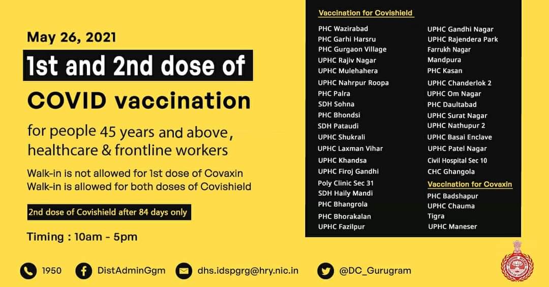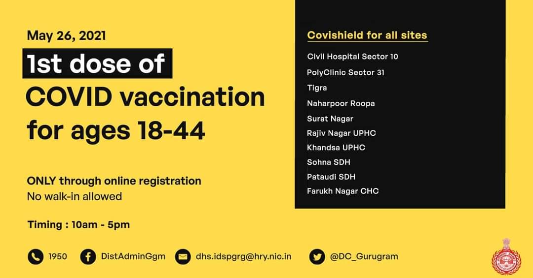 गुरुग्राम में 45 औऱ 18 प्लस वालों को यहां लगेगी आज वैक्सीन, देखें लिस्ट Uncategorized By PBK News On May 26, 2021 103 Share 103 Share FacebookTwitterGoogle+ReddItWhatsAppPinterestEmail