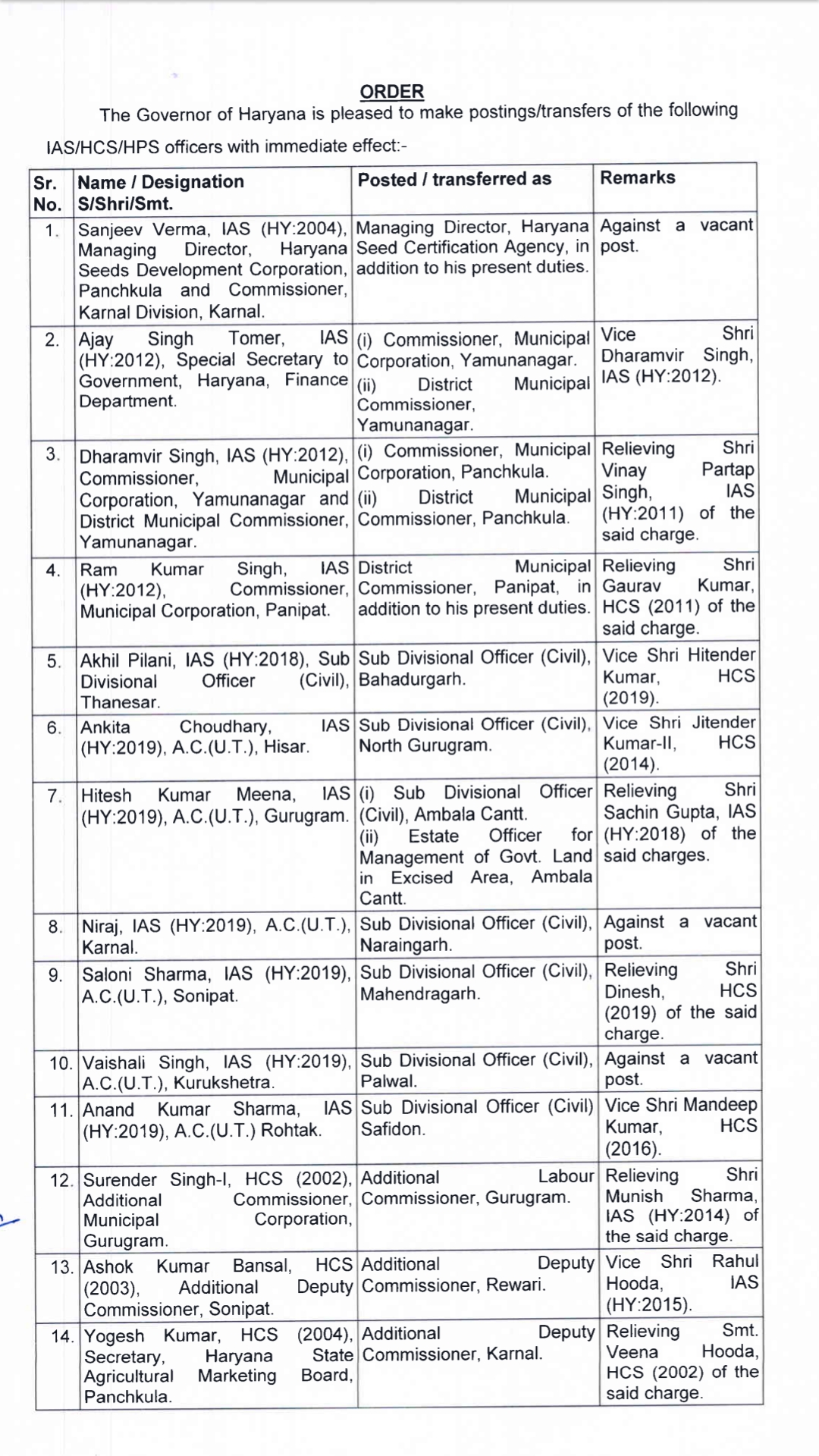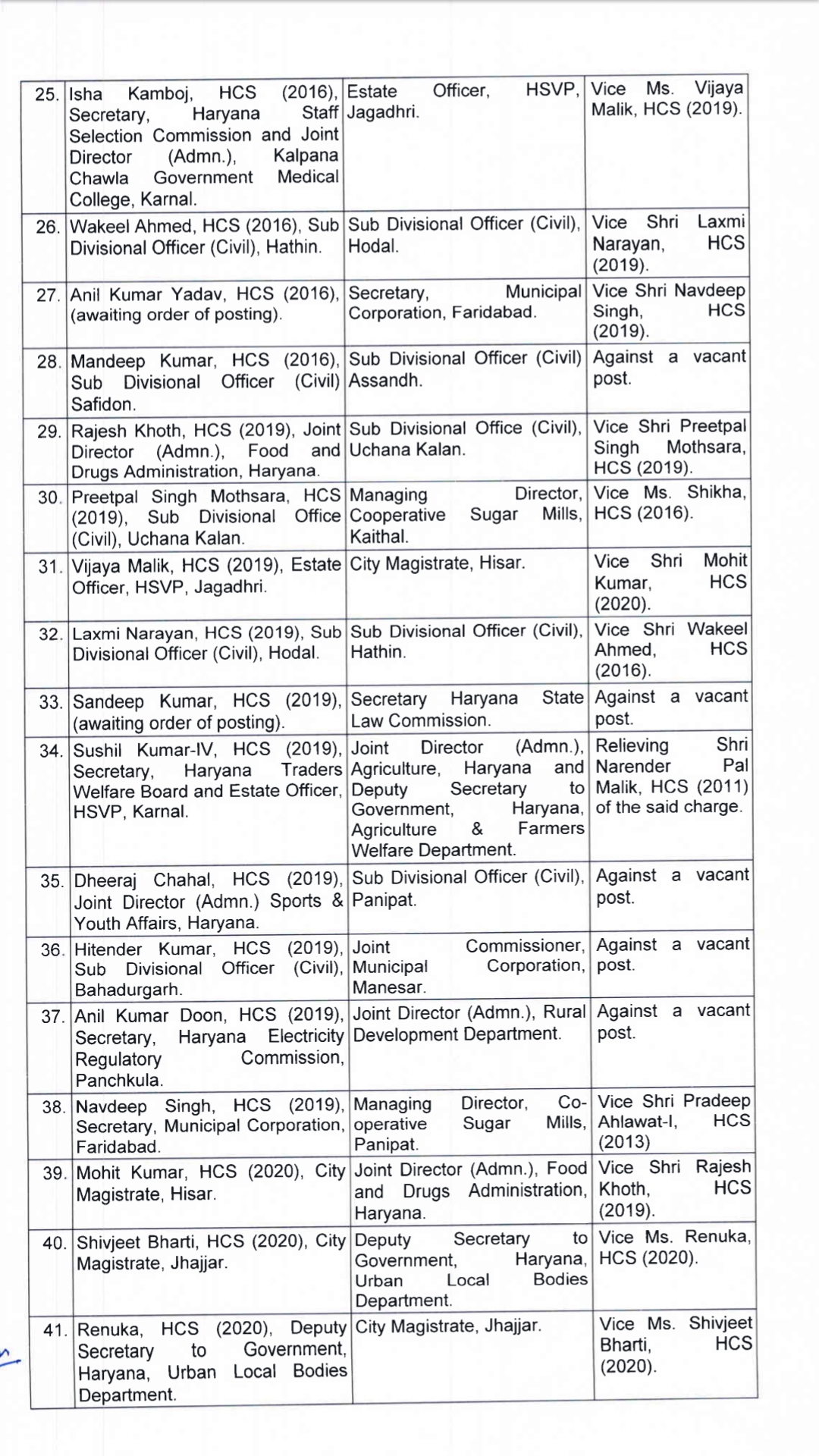 41 IAS , HCS अफसरों का तबादला, हितेंद्र जॉइंट कमिश्नर मानेसर न.नि. नियुक्त देखें लिस्ट Gurgaon Live By PBK NEWS On Jul 1, 2021 235 Share 235 Share FacebookTwitterGoogle+ReddItWhatsAppPinterestEmail