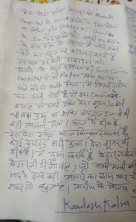 इसके साथ ही कमलेश कालरा ने केंविन द्वारा लिए गये इलाज के बाद अपने मधुमेह रोग के पूरी तरह से नियंत्रण में आने की भी जानकारी दी। उन्होंने बताया कि डॉ. डीपी गोयल जो अपनी माता की याद में केंविन फाउंडेशन के माध्यम से गरीब और जरूरतमंद लोगों का इलाज बहुत कम पैसों में कर रहे हैं, वह बेहद सराहनीय और नेक काम कर रहे हैं। कमलेश कालरा ने डॉ. डीपी गोयल और उनकी टीम को धन्यवाद देते हुए कहा, वे लोगों की भलाई के लिए जो सेवाएं दे रहे हैं, वह वास्तव में बहुत बड़ा और सराहनीय कार्य है। मैं दिल से उन्हें बधाई और शुभकामनाएं देता हूं। केंविन फाउंडेशन का यह प्रयास न केवल रुपांश कालरा के जीवन को बचाने में सफल रहा है, बल्कि यह भी साबित करता है कि सही चिकित्सा सेवाओं और उपचार के माध्यम से गंभीर बीमारियों को भी बिना ऑपरेशन के ठीक किया जा सकता है।![]()